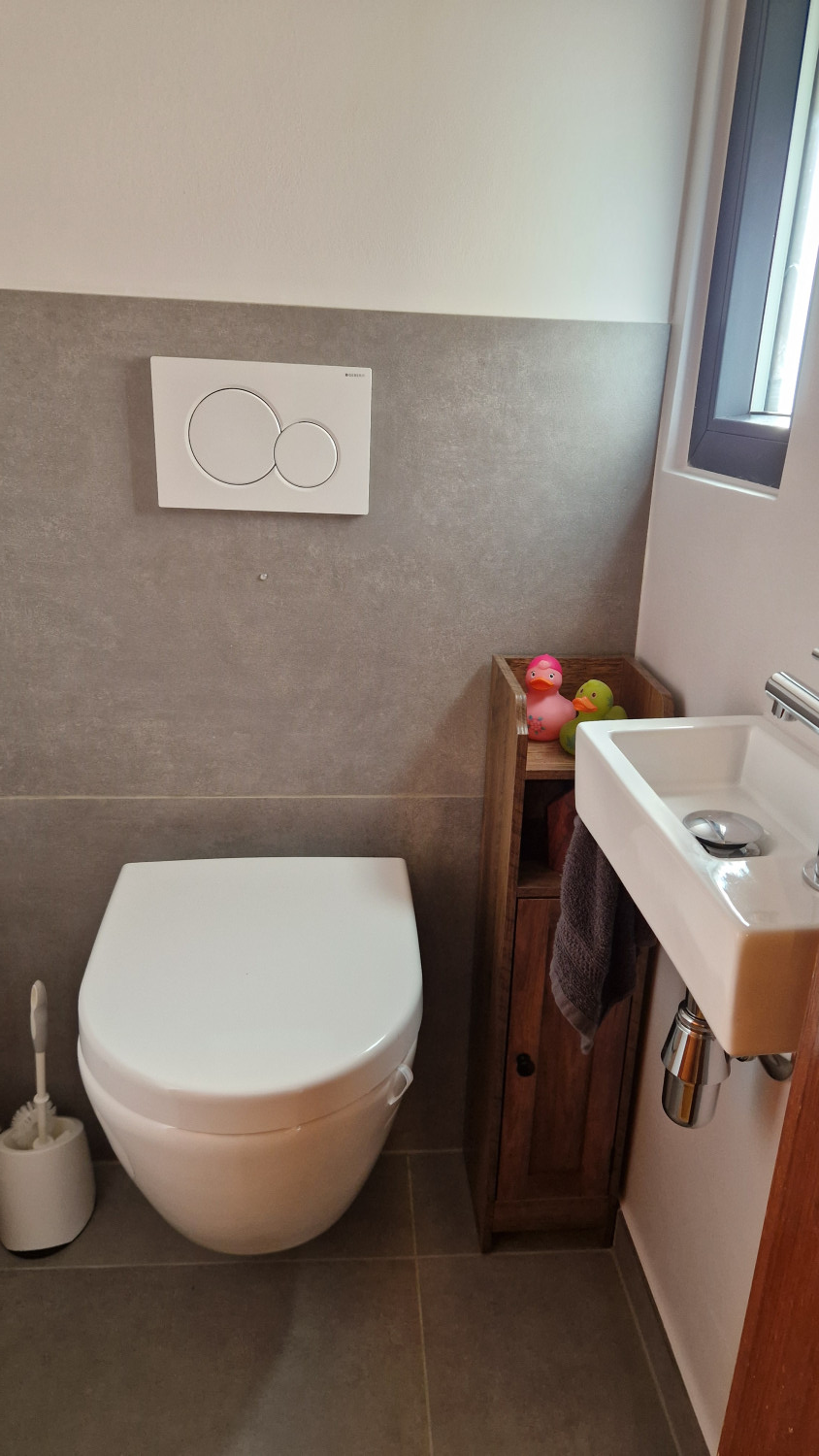 D’letzt Woch hun mir d’Réceptioun vun engem Chantier konne maachen, bei deem mir eng Kichen, e Living mat Uewen, eng separat Toilette an e Buedzëmmer komplett renovéiert hun. Well d’Haus keng zentral Waarmwaasserhierstellung haat, hu mir dëst Geleeënheet genotzt, fir en Zentralboiler ze installéieren an och d’Sanitärleitungen komplett ze erneieren.